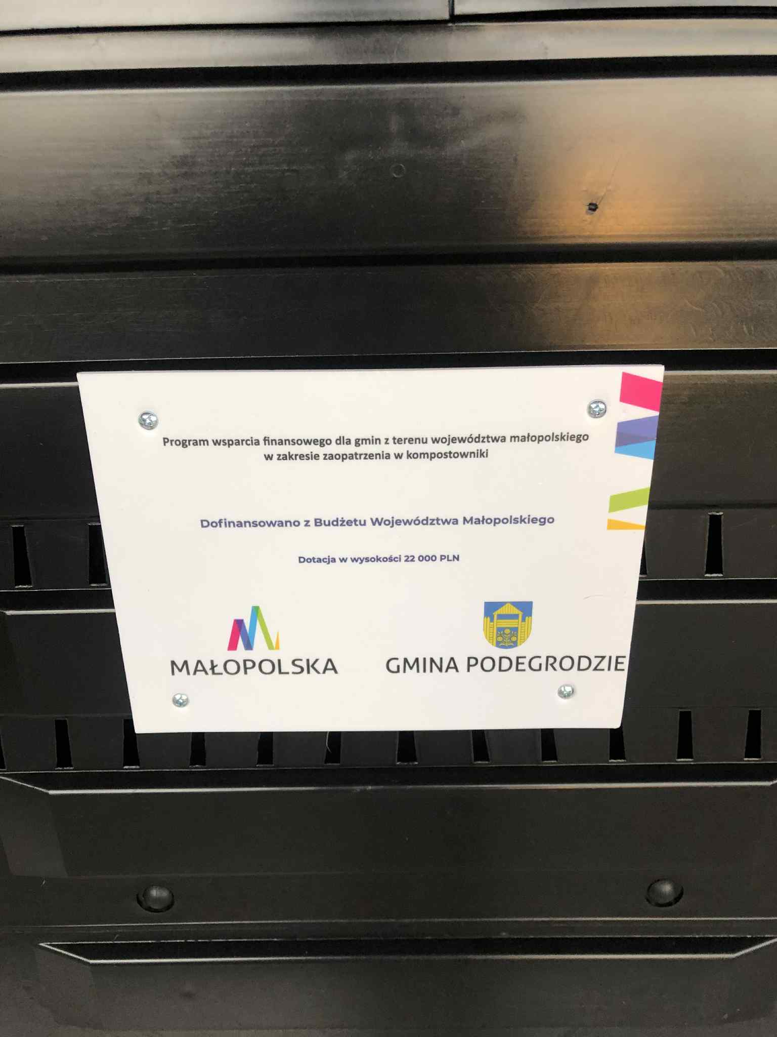 Samorząd Województwa Małopolskiego postanowił udzielić pomocy finansowej 134 gminom z terenu województwa małopolskiego, które zwróciły się o dofinansowanie, w zakresie zaopatrzenia w kompostowniki o łącznej wysokości 2 933 450 zł. Gmina Podegrodzie otrzymała dofinansowanie w kwocie 22 000 zł.