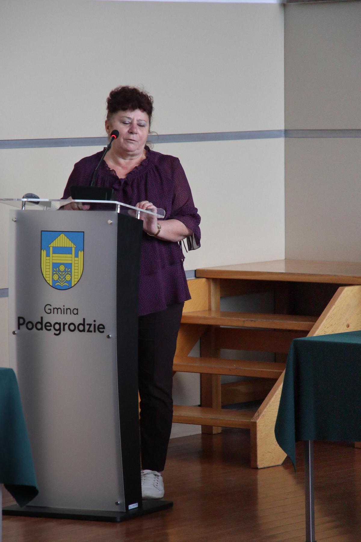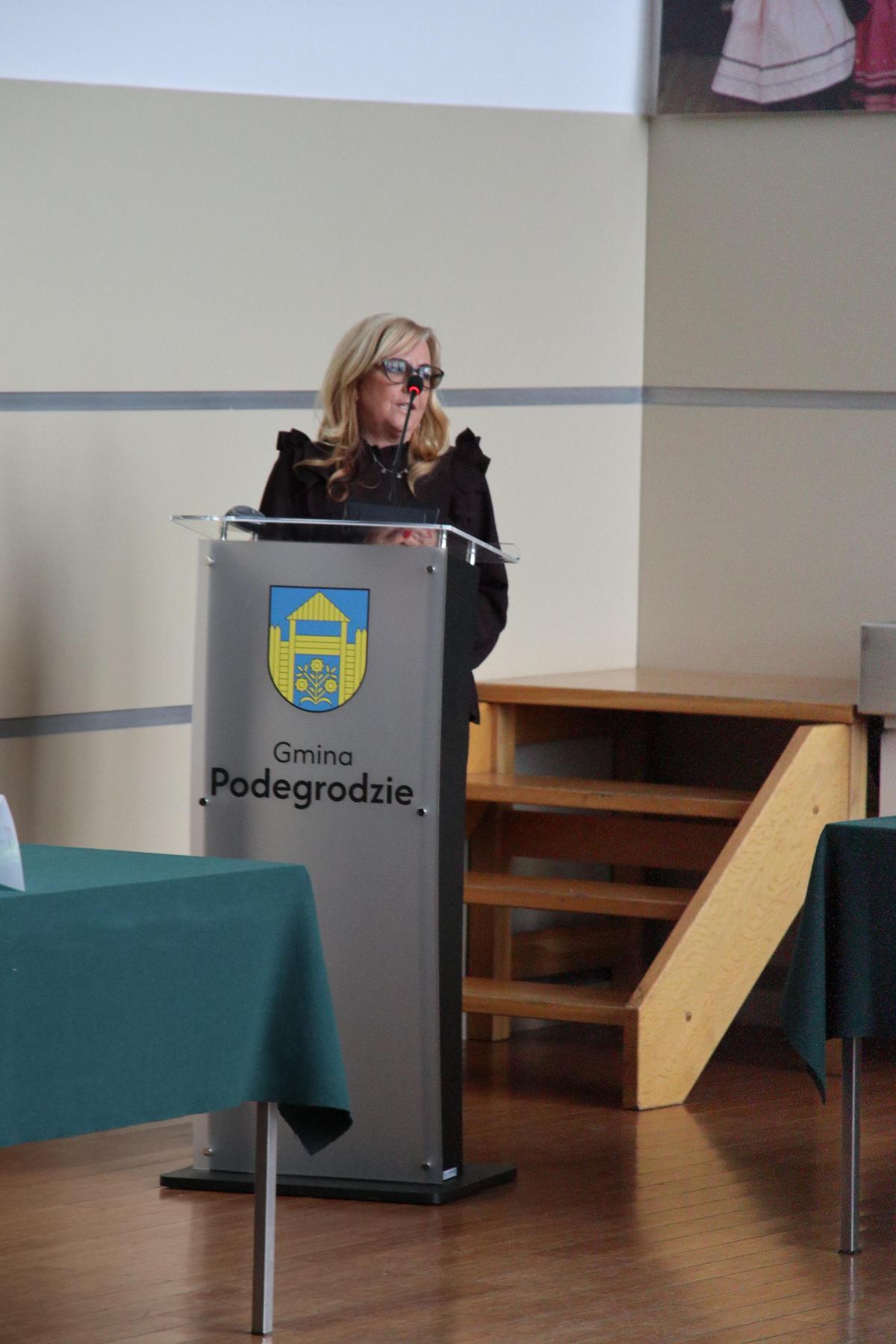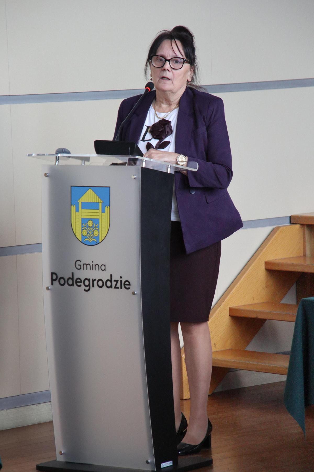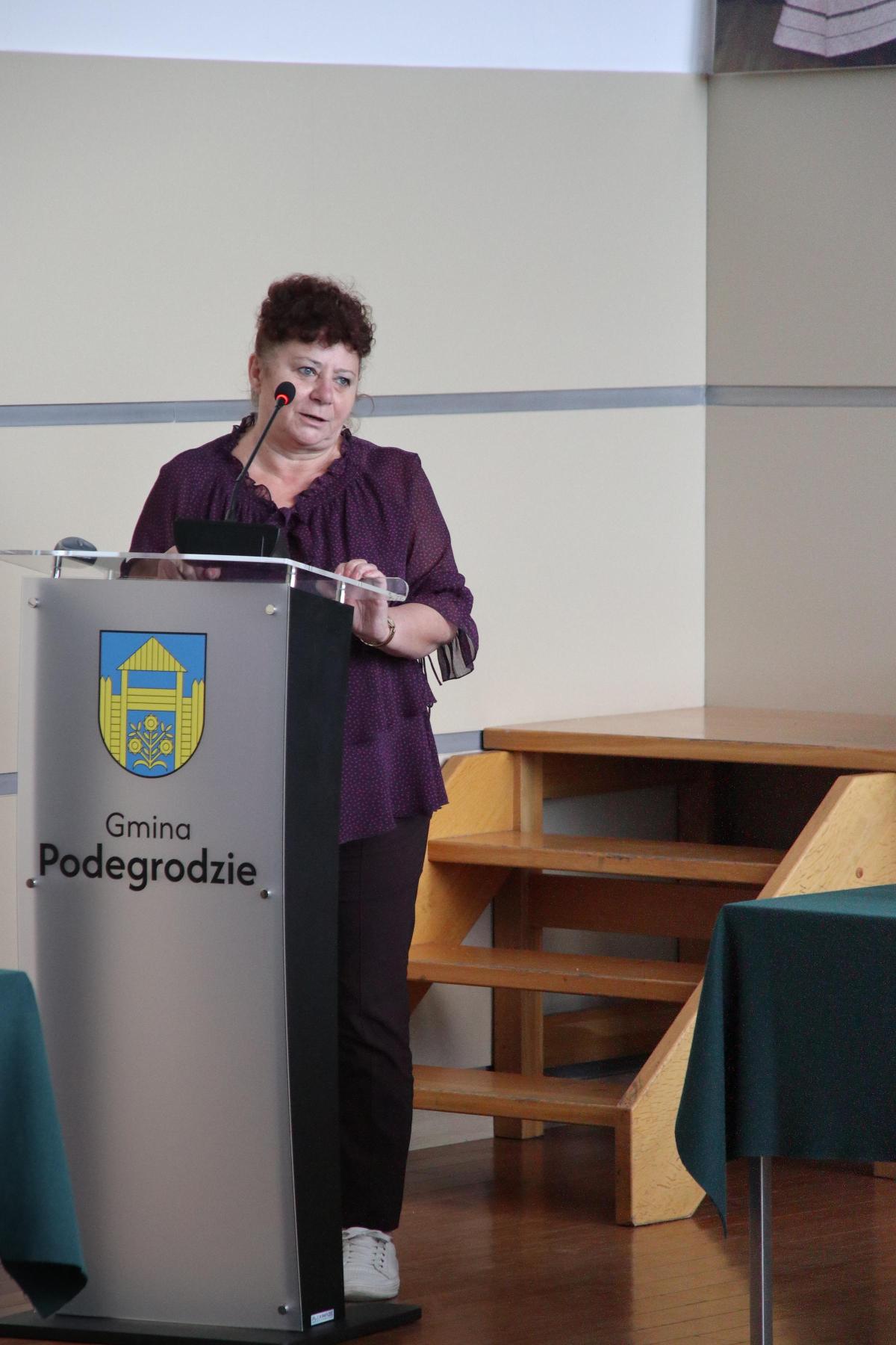 Podczas sesji Pani Magda Talar Kierownik Referatu Obsługi Placówek Oświatowych w Gminie Podegrodzie przedstawiła informację o realizacji zadań oświatowych w roku szkolnym 2024/2025 w Gminie Podegrodzie.