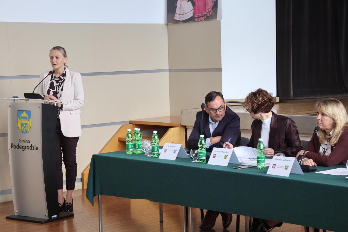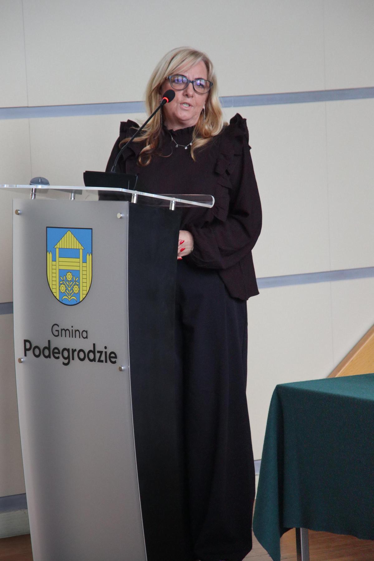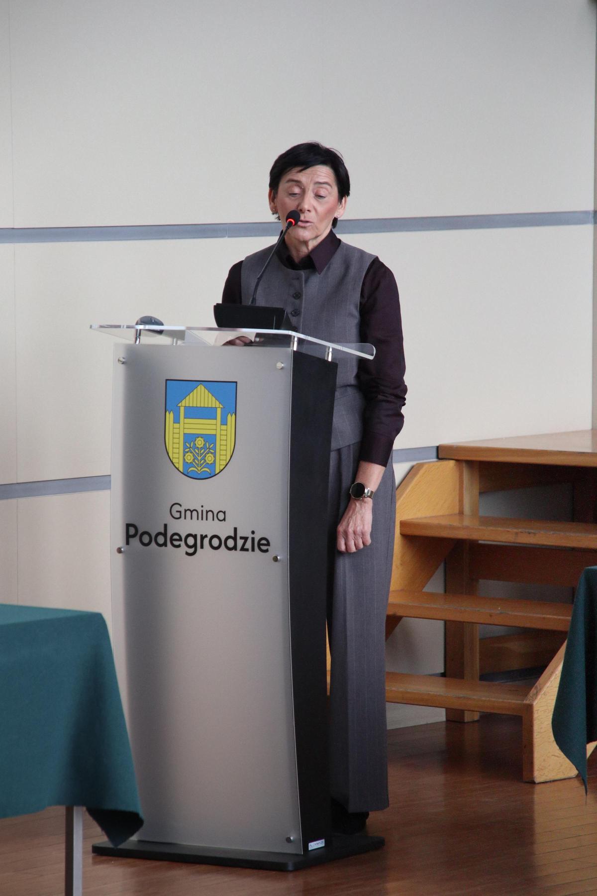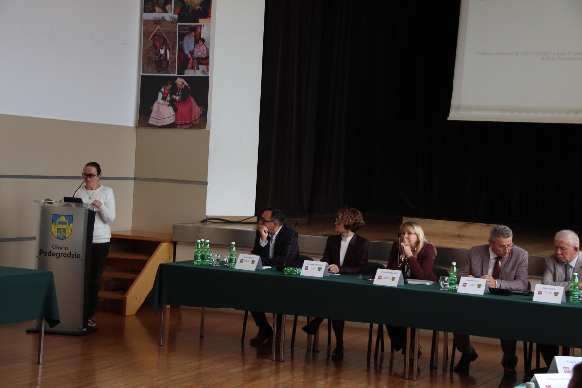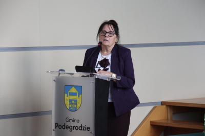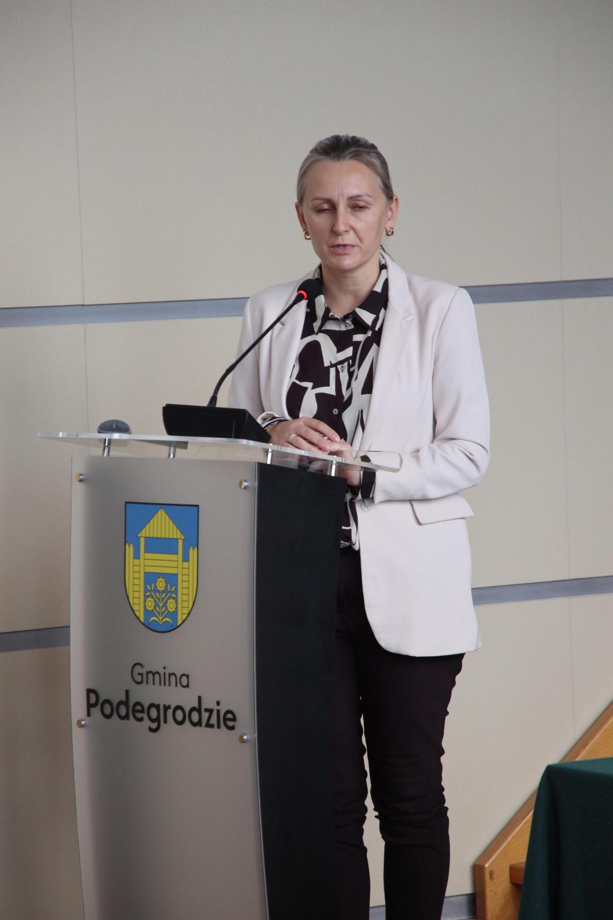 Podczas sesji Pani Magda Talar Kierownik Referatu Obsługi Placówek Oświatowych w Gminie Podegrodzie przedstawiła informację o realizacji zadań oświatowych w roku szkolnym 2024/2025 w Gminie Podegrodzie.