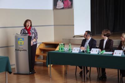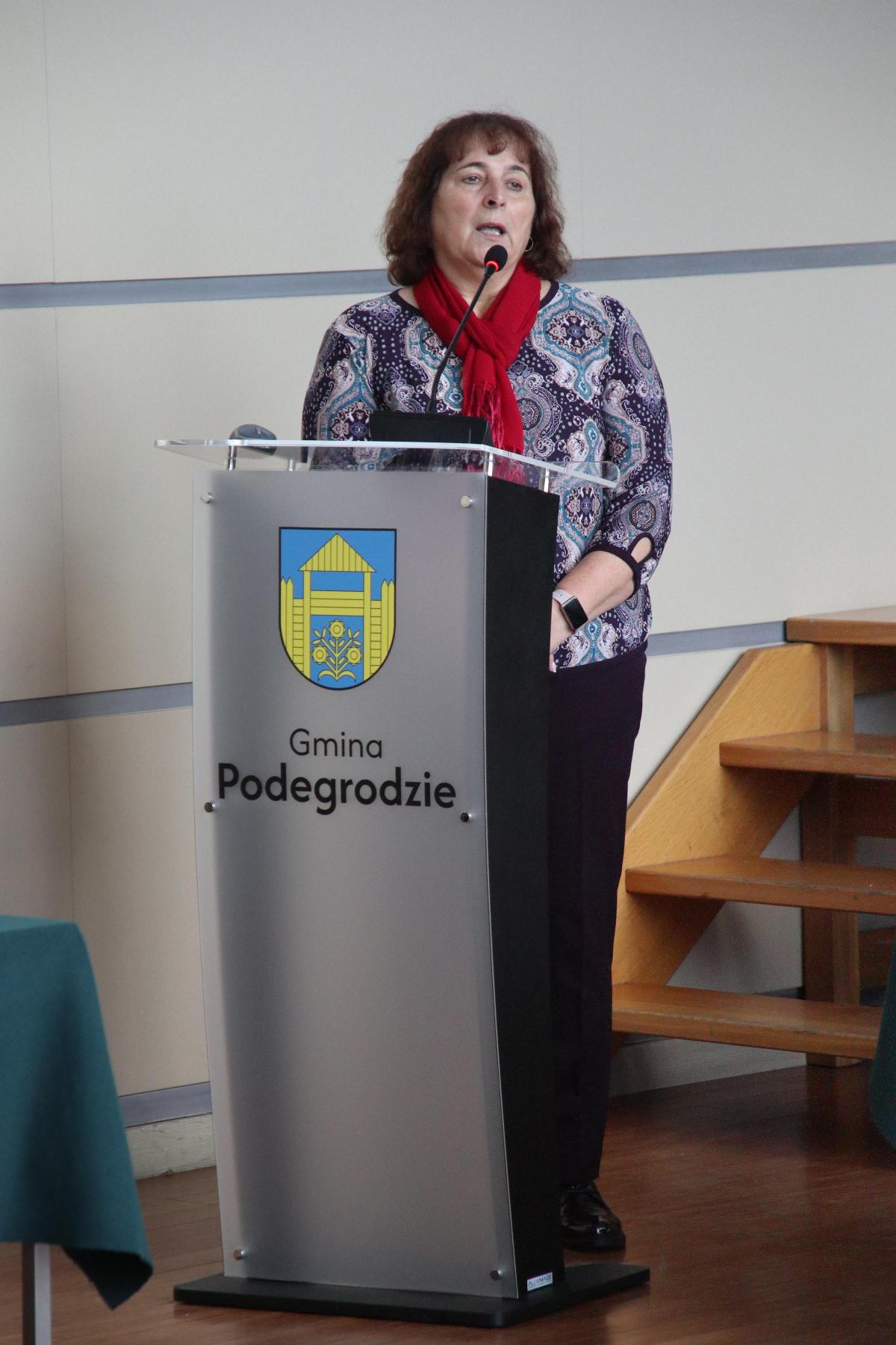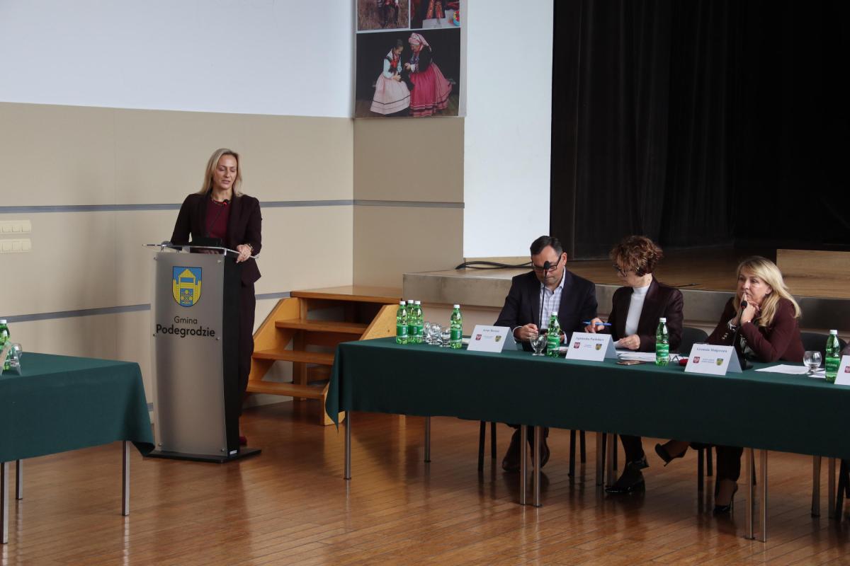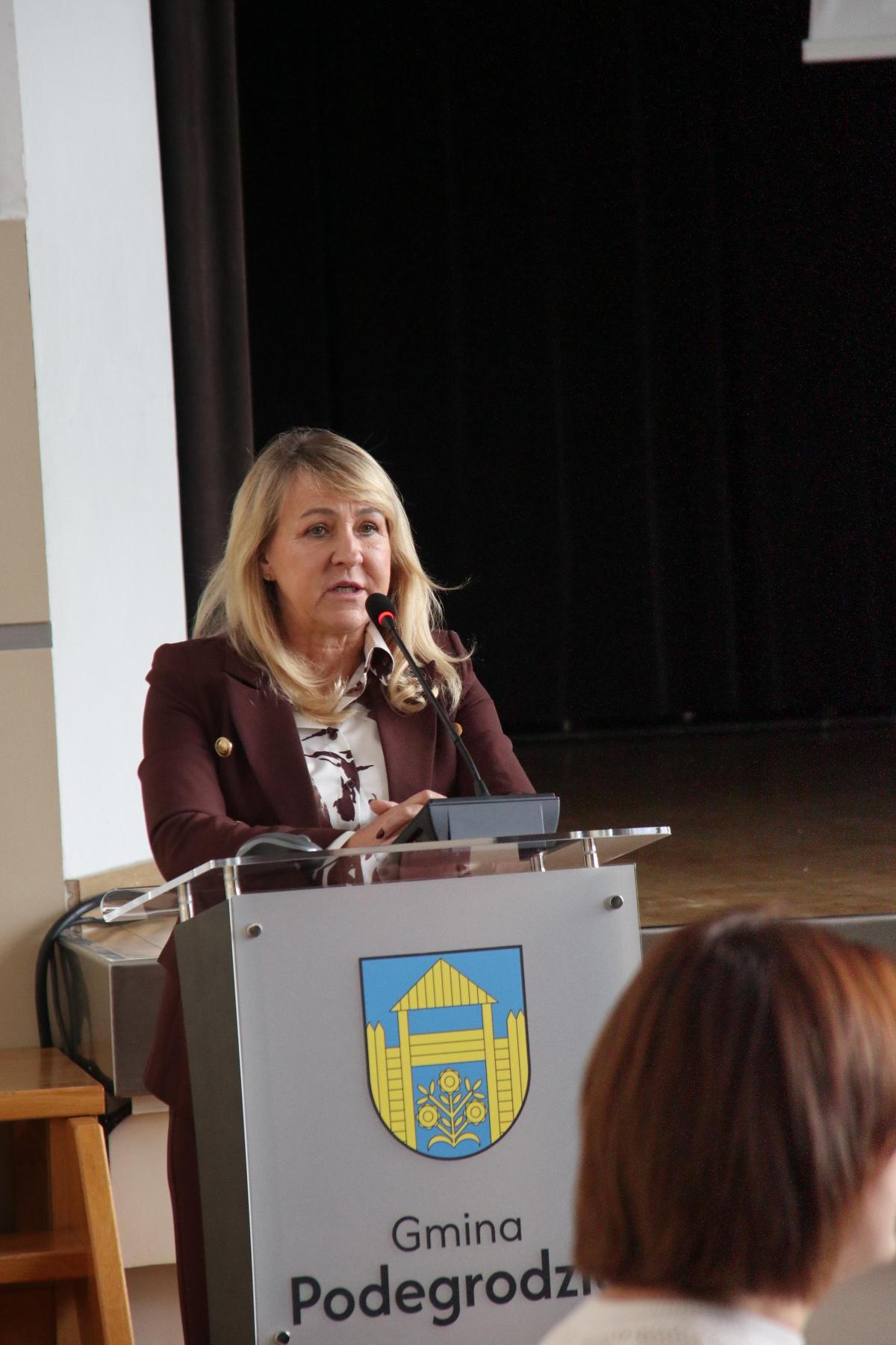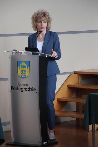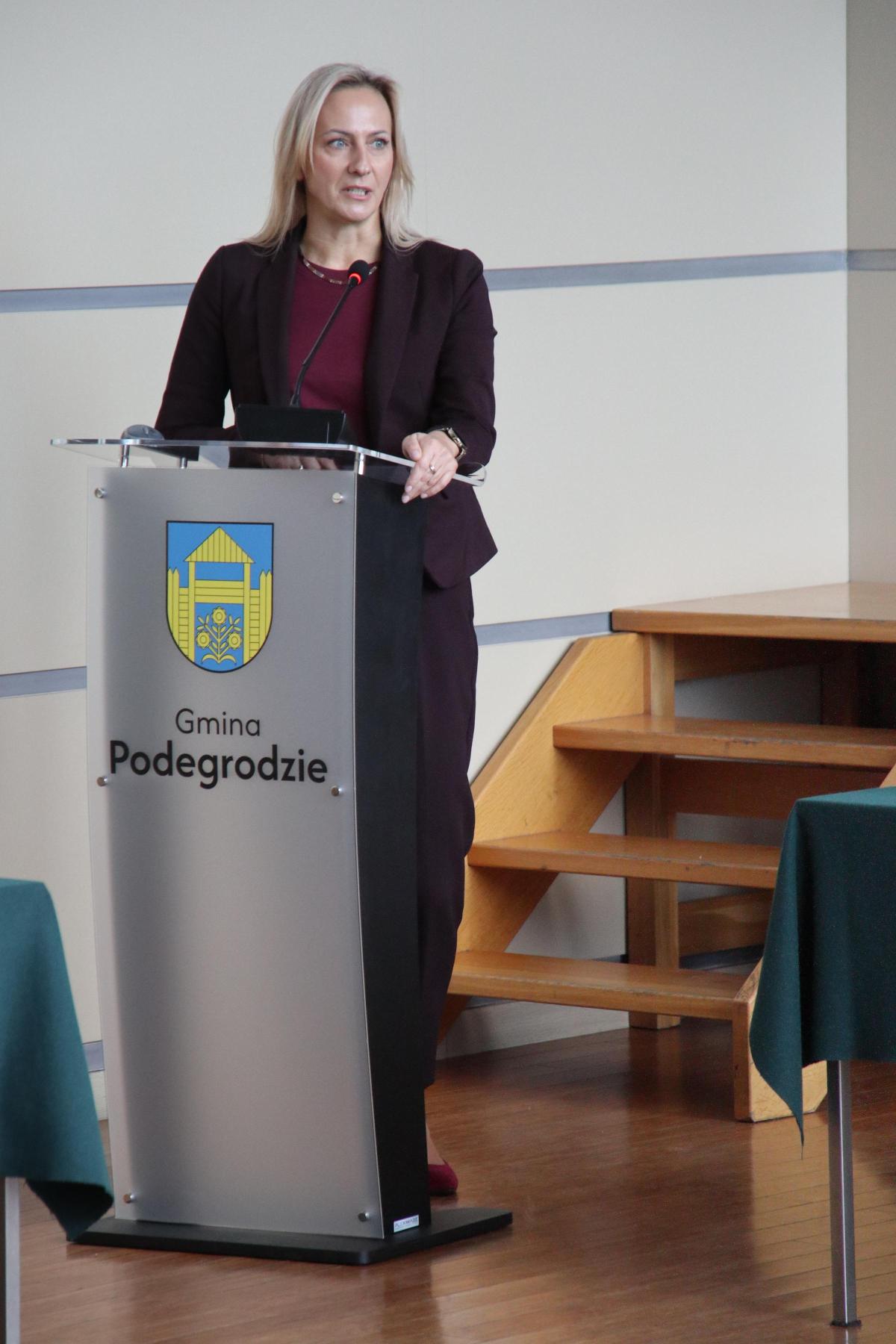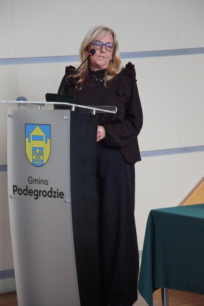 Podczas sesji Pani Magda Talar Kierownik Referatu Obsługi Placówek Oświatowych w Gminie Podegrodzie przedstawiła informację o realizacji zadań oświatowych w roku szkolnym 2024/2025 w Gminie Podegrodzie.