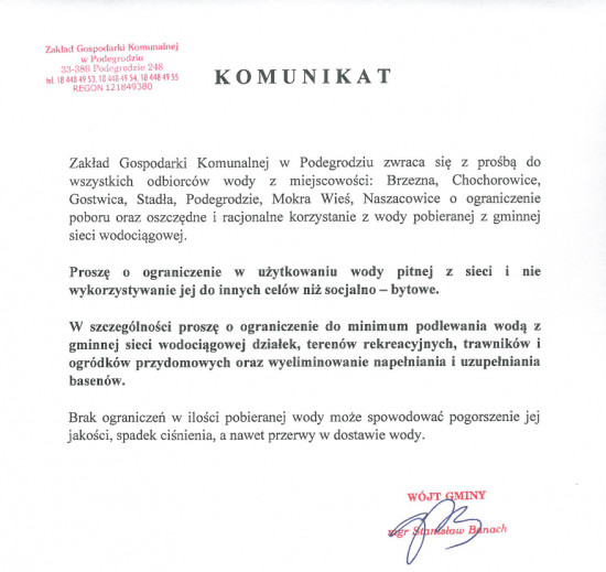 Drukuj Powrót do poprzedniej strony WAŻNY KOMUNIKAT ZGK 28.06.2022 12:32 Podziel się: Facebook Twitter Email Treść